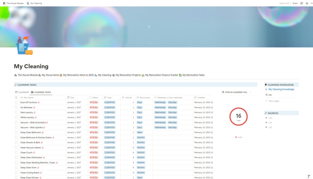 • use the Cleaning database to keep track of your cleaning tasks that will help you maintain a neatly organized and clean house