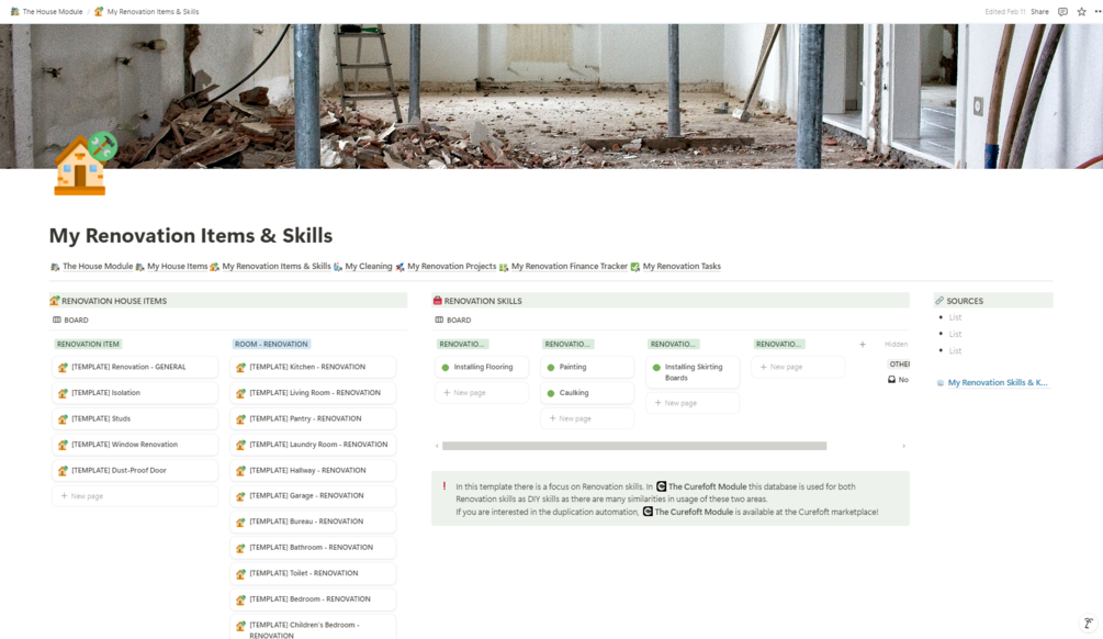 • use the Renovation Skills database to store all information regarding skills and knowledge you need to master in order to build your dream house