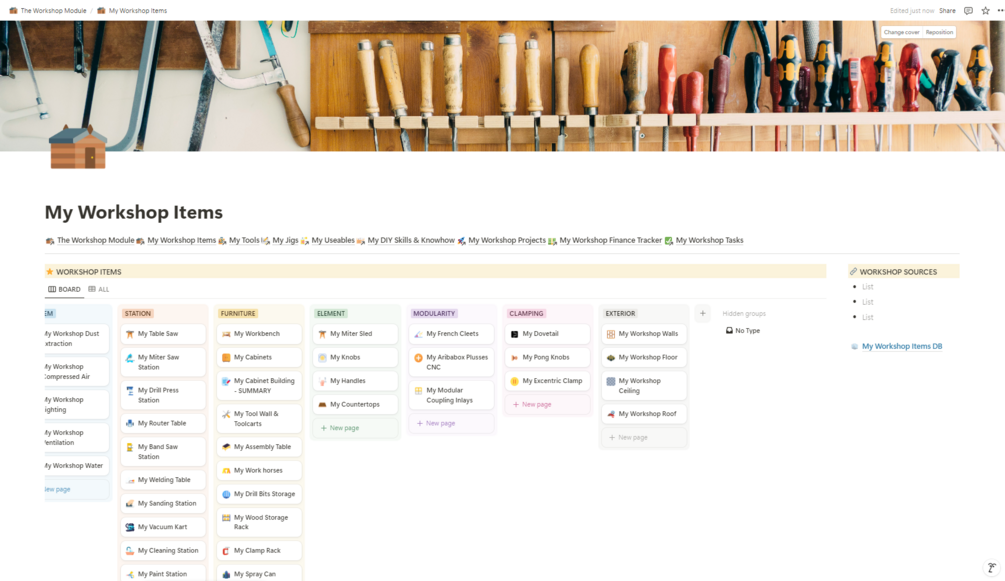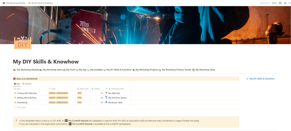 • use the DIY Skills database to store all information regarding skills and knowledge you need to master in order to build your dream workshop