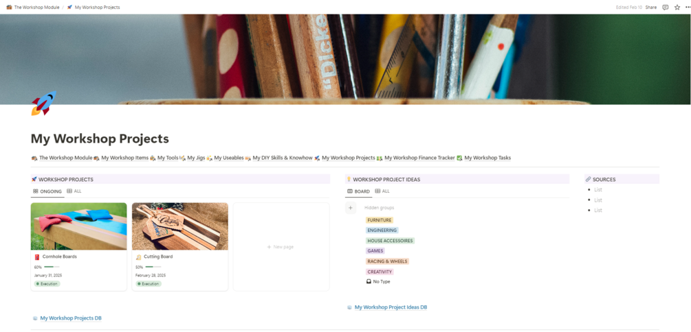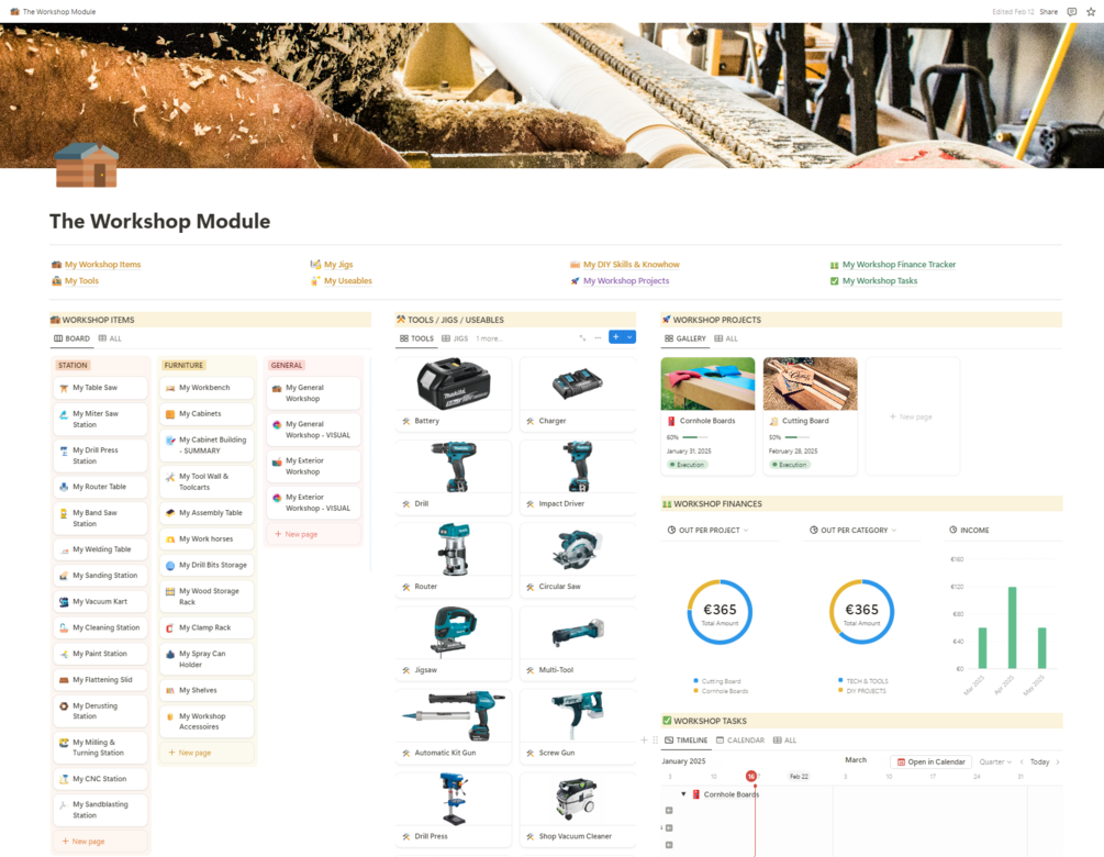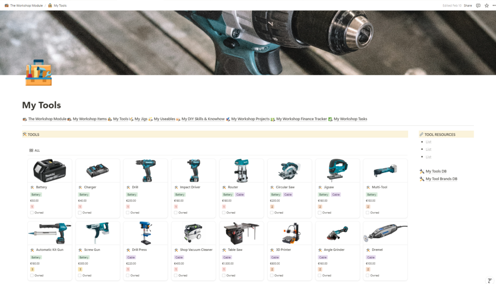 • use the Tools database to store all your workshop tools that allow you to create your favorite shop projects