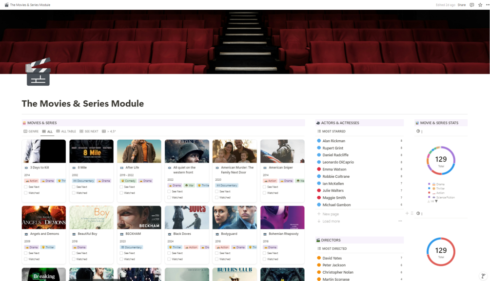 The Movies & Series Module contains all movies and series you have watched or the ones that top the see-next list, and this in one single place always at hand!