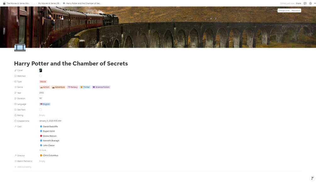 • use the Movies & Series database to store all relevant information like Titles, Cast, Directors, Categories, Ratings, Covers, Watch Partners,…